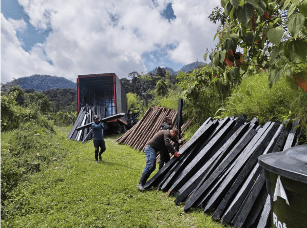 Siembra de material vegetal en proyectos de reforestación.